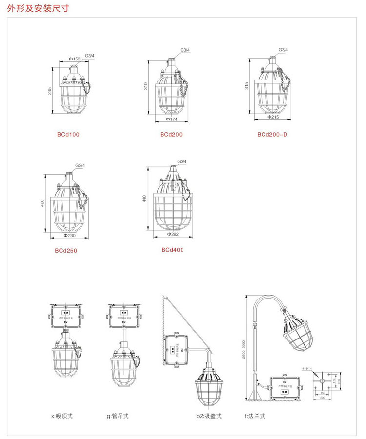 ◇可配装白炽灯、自镇汞灯、高压汞灯、高压钠灯、金卤灯、节能灯;