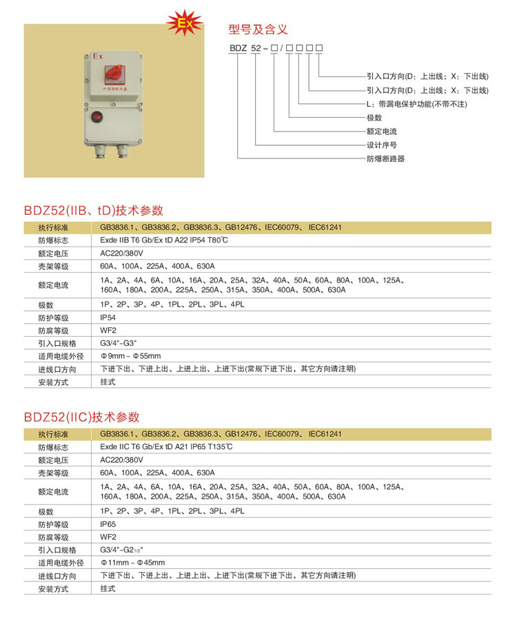 ◇本系列产品为复合型结构,主腔采用隔爆型结构,接线腔采用增安型结构;
