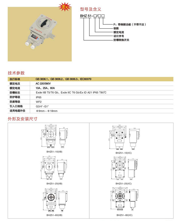 ◆本系列产品为复合型结构,主腔采用隔爆型结构,接线腔采用增安型结构