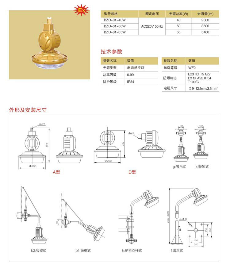●灯具由光源腔、电器腔和进线腔构成,密闭式设计。