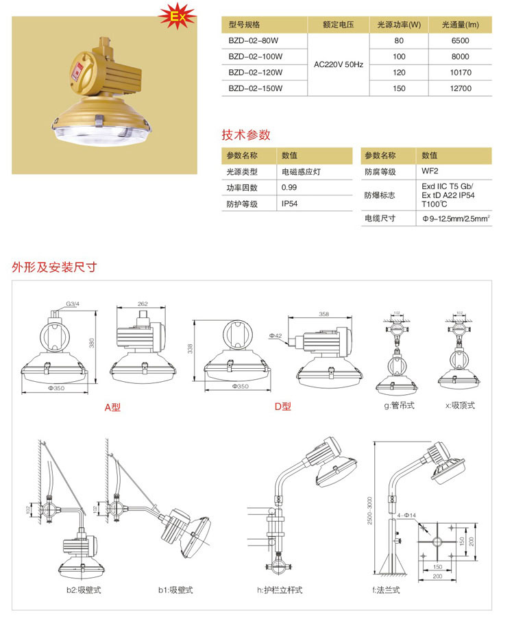 7.灯具造型新颖、BZD-02美观大方,安装维护方便,适用低棚照明。