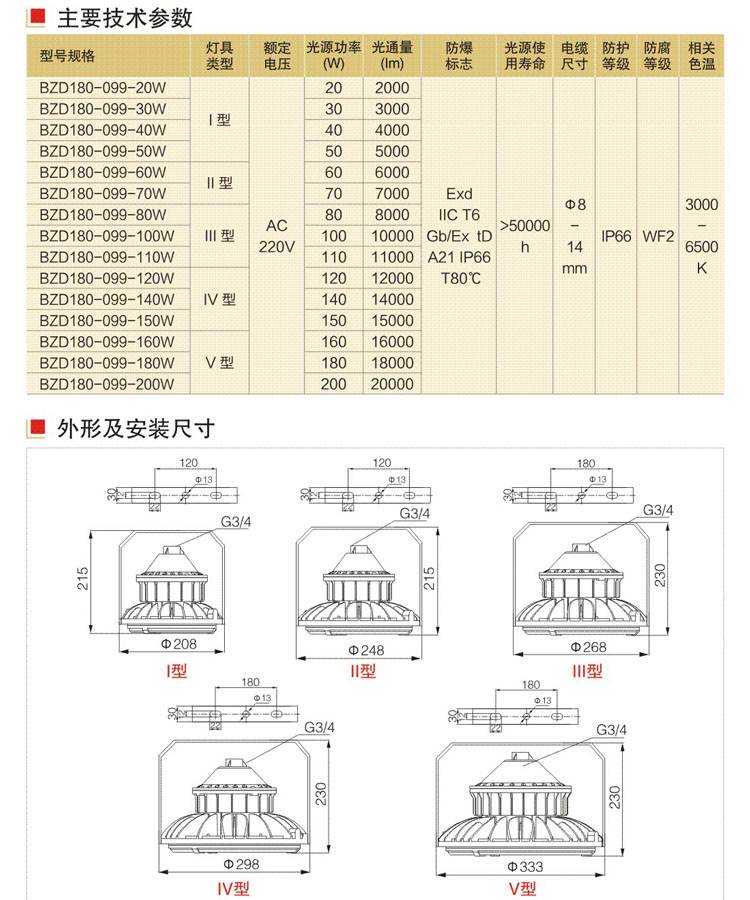◇灯具采用纯隔爆结构,防爆性能优良;