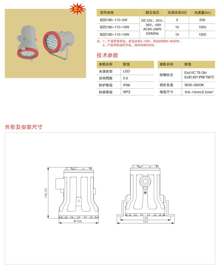 防爆等级高,外形轻巧美观;