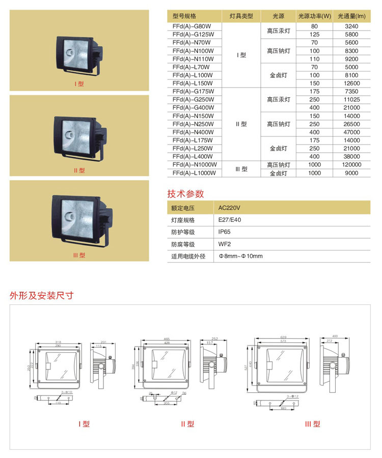 FFd(A)系列防水防尘防腐泛光灯
