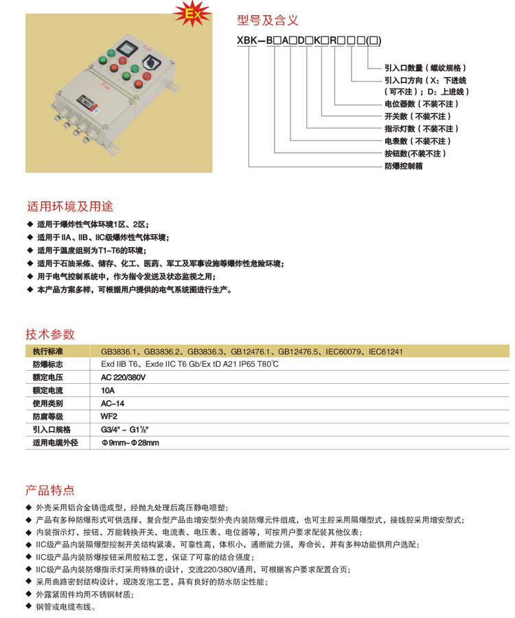 1、复合型外壳采用增安型结构,内装元件采用隔爆型元件或增安型的元件,外壳采用ZL102铝合金压铸成型,表面高压静电喷型,内装的元件有按钮、控制开关、仪表等均为放爆元件;