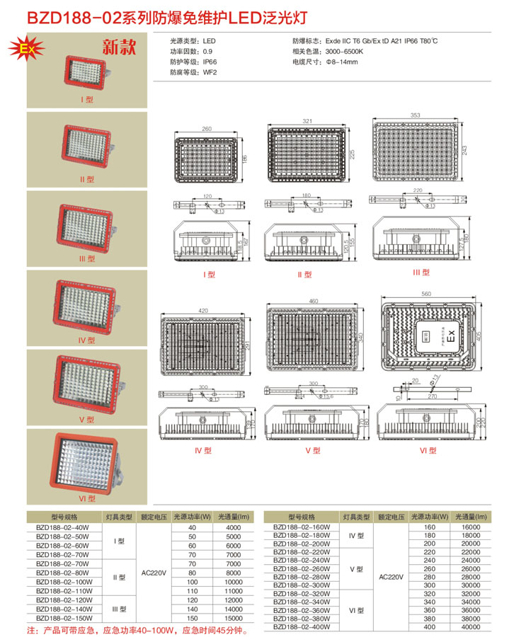 ◇防爆灯外壳采用铝合金高压铸造成型,表面经抛丸后高压静电喷塑,有效提高了壳体的散热性能;