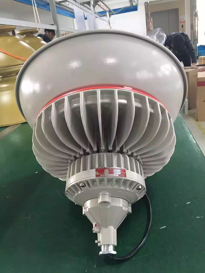 免维护LED防爆投光灯适用场所:适用于A,B类含有爆炸性气体或蒸汽环境,温度组别为T1T2的1区和2区室内外危险场所照明。性能特性:1.防爆型式为隔爆型,适用于气体爆炸危险场所照明使用。2.灯具外壳由抗拉强度高,具有良好耐腐蚀性能的铝合金铸造,且外壳表面聚酯粉末喷涂。灯具整体造型新颖、美观大方。3.灯具为分体式,由灯具和镇流器箱组成。灯具可作俯30,仰60和水平30投射角度调整。4.灯具采用平面钢化玻璃透光板,抗冲击性强,透光率高,耐热剧变性好。