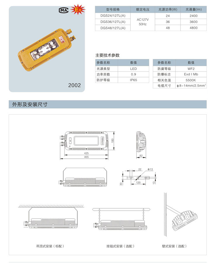 ◇可采用吊环式和吸壁式等安装方式,满足不同工作现场的安装需求和照明需要,操作简单方便,独立接线腔结构,使用产品维修更方便;